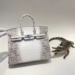 Herms Birkin HSS 25 Noir (Himalyan)Bleu Saphir Crocodile Porosus Lisse Palladium Hardware 6002
