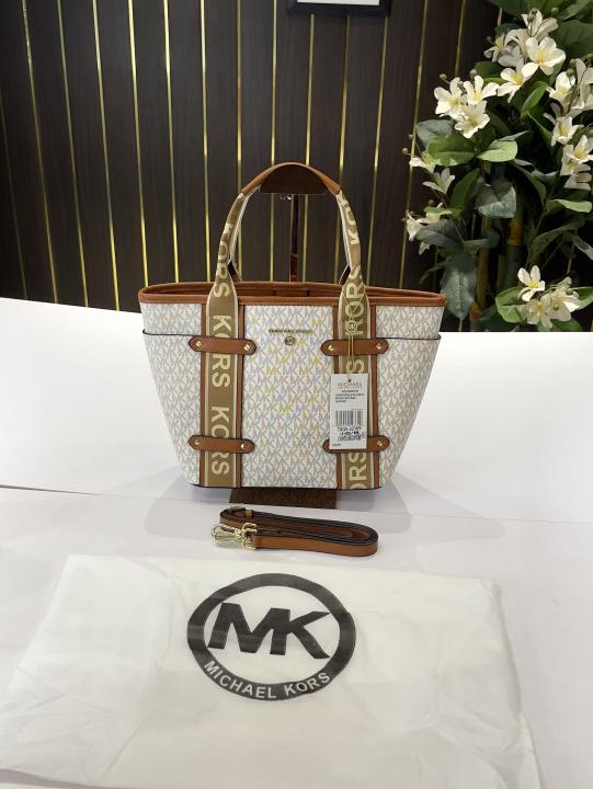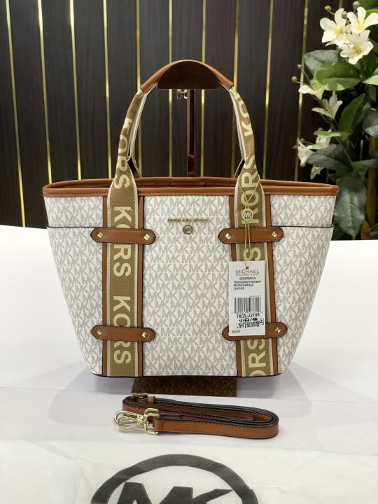 _Michael_kors Maeve medium size 33cm tote bag with dust bag(22109-white-brown)