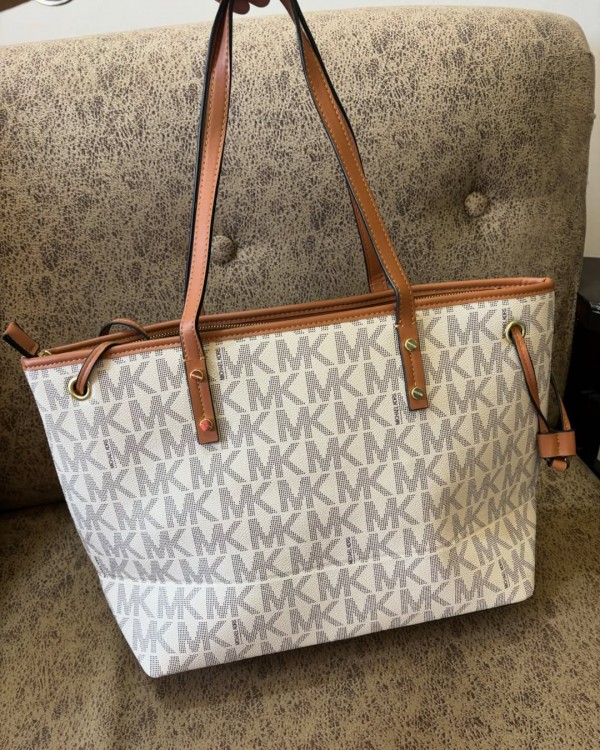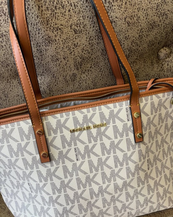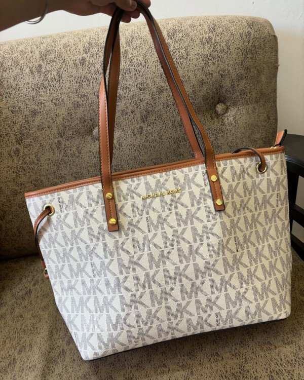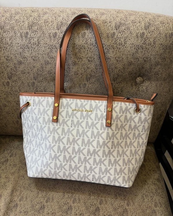 Michael_Kors_MK Voyager Tote Bag With Side Pocket & Dust Bag (Beige Brown 2003)
