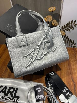 Karl Lagerfeld KSKUARE SILVER Color Grainy Small Tote Bag (With Box)