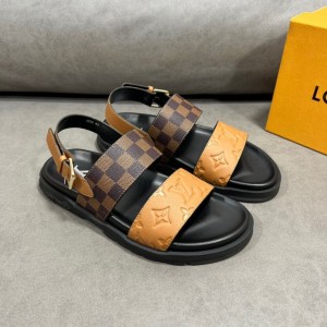 Louis Vui_ton monogram embossed cowhide strap and unique plaid patern sandal.