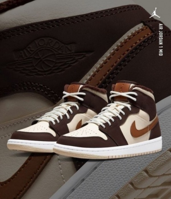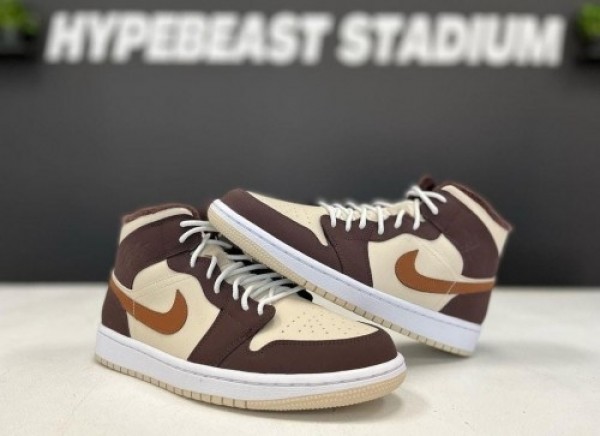 Ni_ke jordan retro 1 mid brown basalt oatmeal mocha
