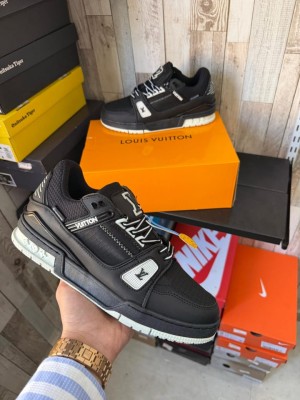 Loui_s vuitton trainer lv sneaker blackgrey leather shine