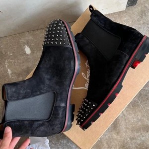 Christian Loubouti.n Spikes Suede Chelsea Boots Premium