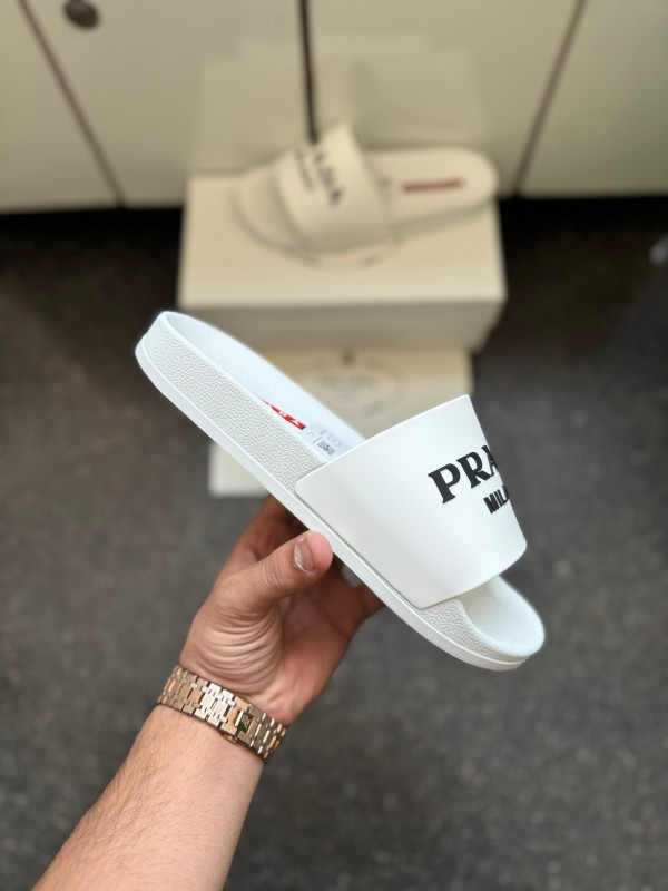 HERMES LOGO BLUE PREMIUM LEATHER SLIDE