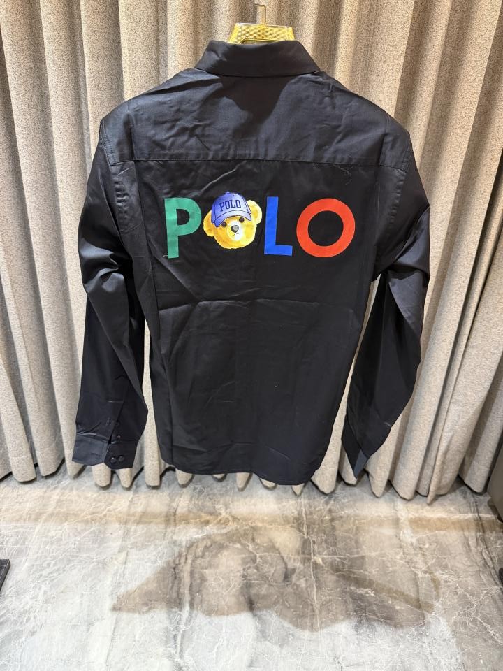 Home Shirts Ralp h Lauren Black Silk cotton Shirts back printed