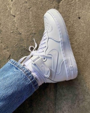 Ni_ke airforce 1 high mid white genuine leather long shoes