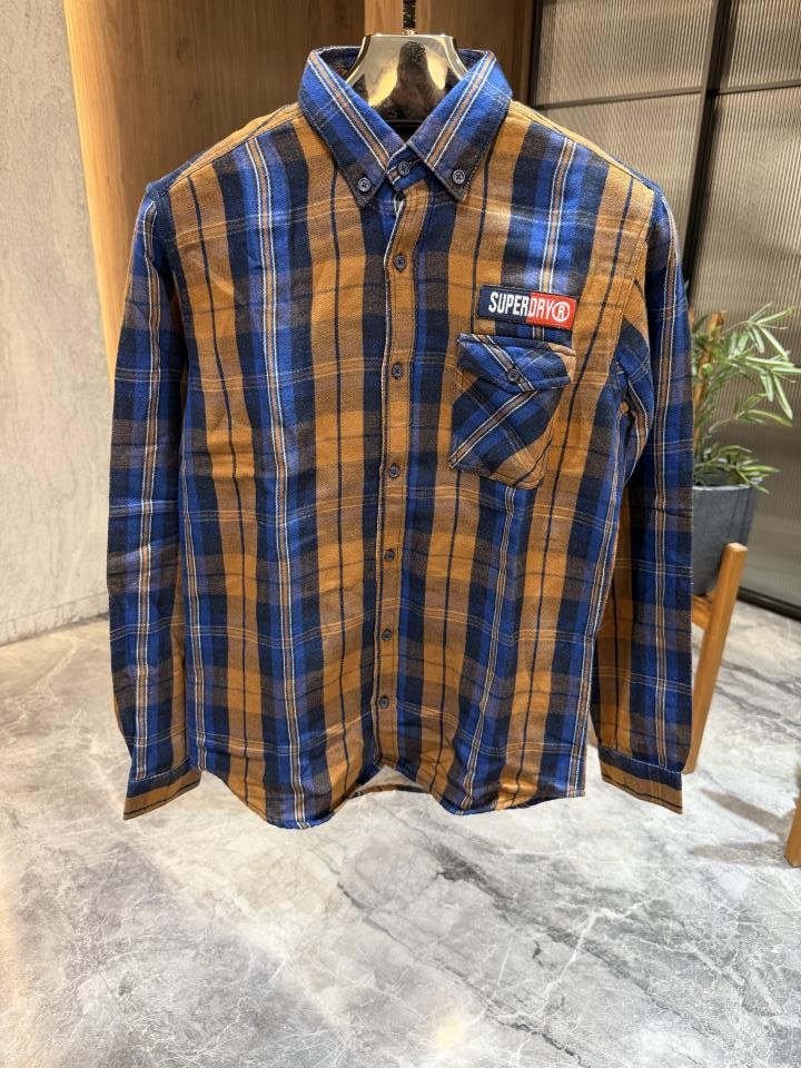 Super dry Brown checks Warm cotton shirts