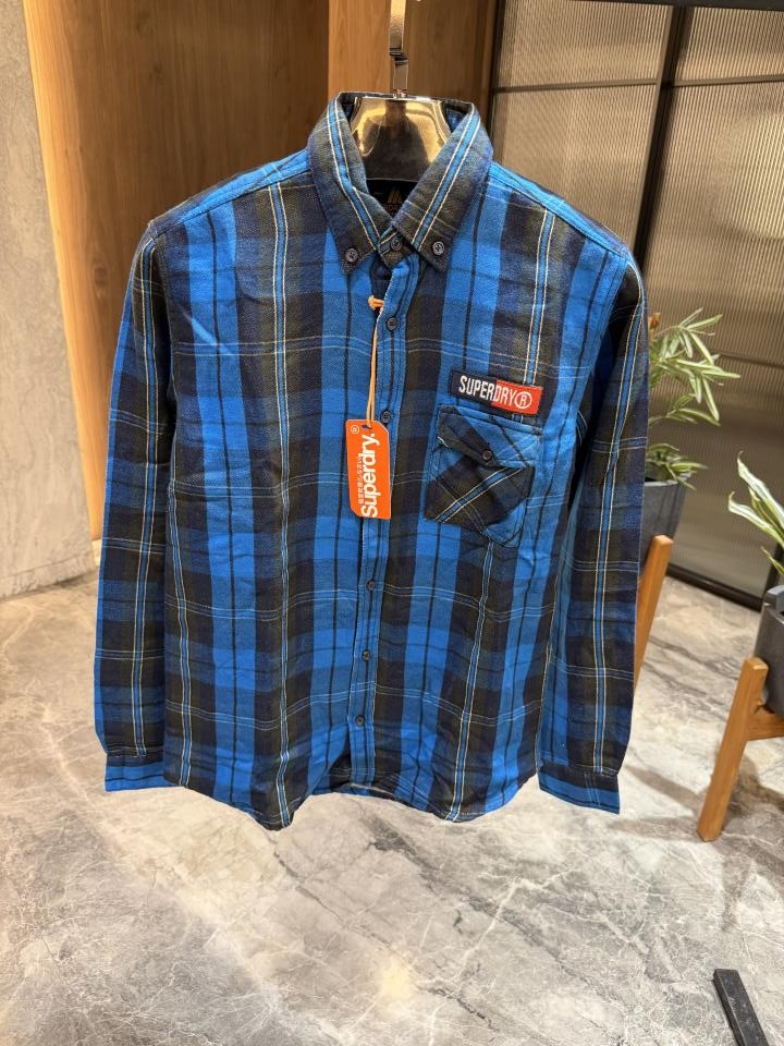 Super dry Brown checks Warm cotton shirts