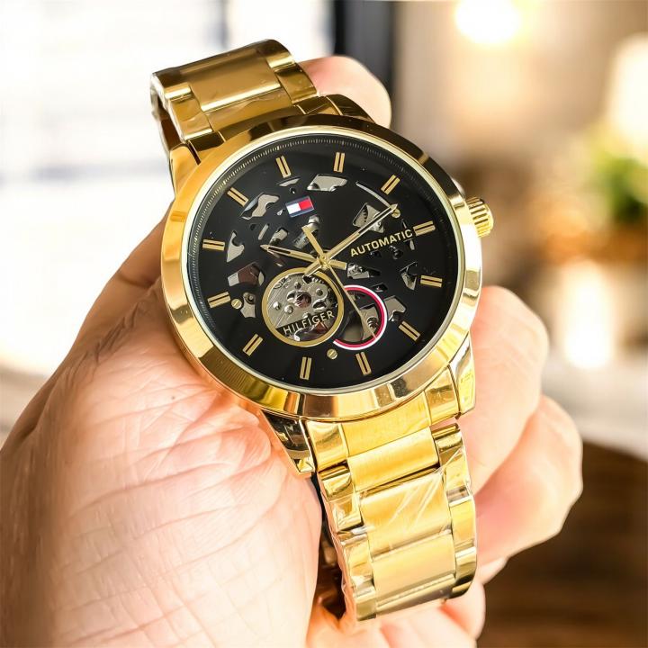 Tommy_hilfiger Automatic Leather Black-Silver-Black