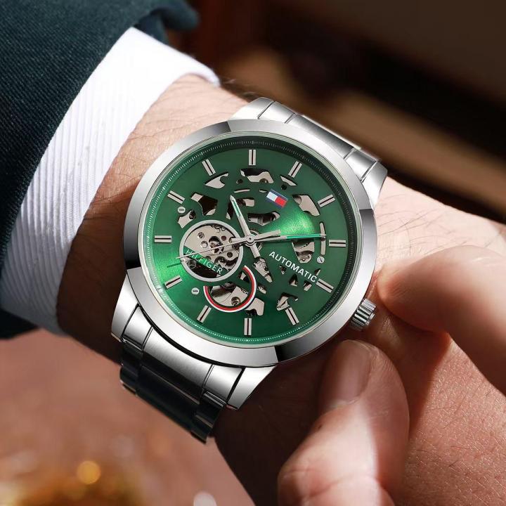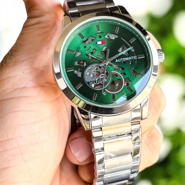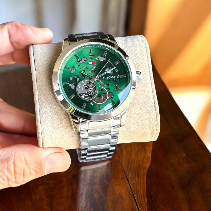 Tommy_hilfiger Automatic Leather Black-Silver-Black
