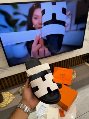 Hermes Chypre Supermaster Flat Sandal White