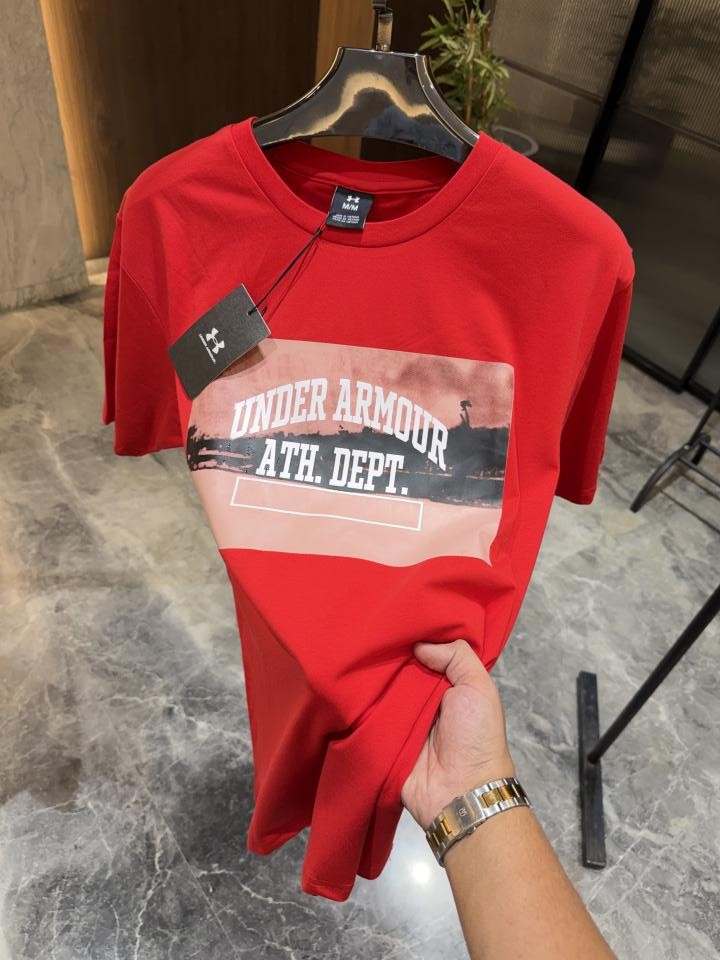 UnderArmour Red Imported Cotton Lycra Round neck Tshirt
