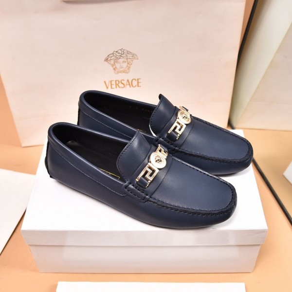 VERSACE LOGO BLUE PREMIUM LEATHER LOAFER