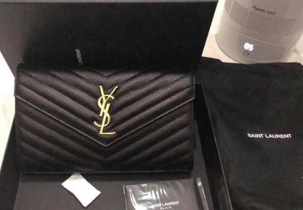 Ysl Saint Laurent Envelope Medium in Quilted Grain De Poudre bag with box
