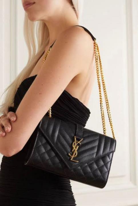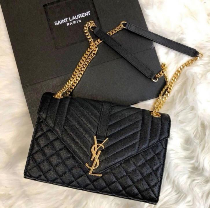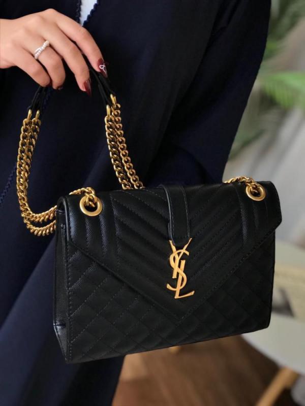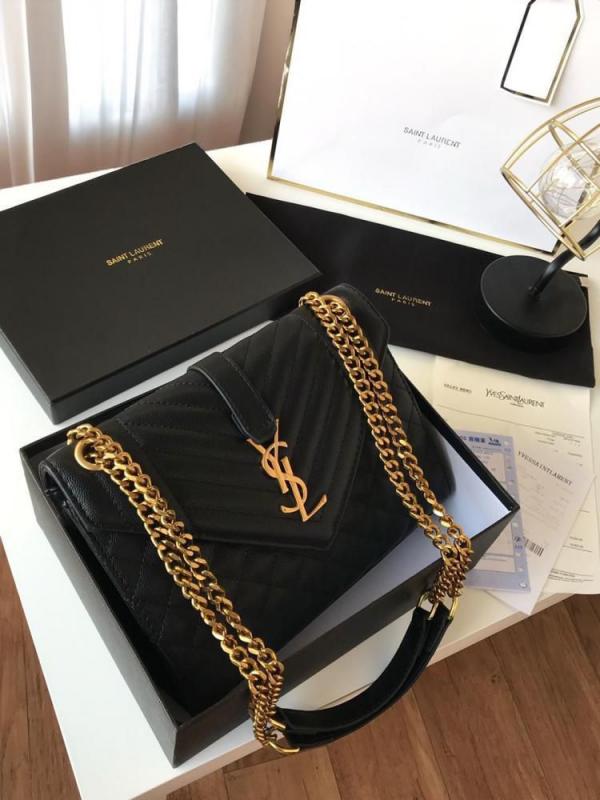 YSL SAINT LAURENT Grain De Poudre Matelasse Chevron Medium Monogram Satchel Black with box 6284
