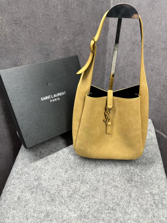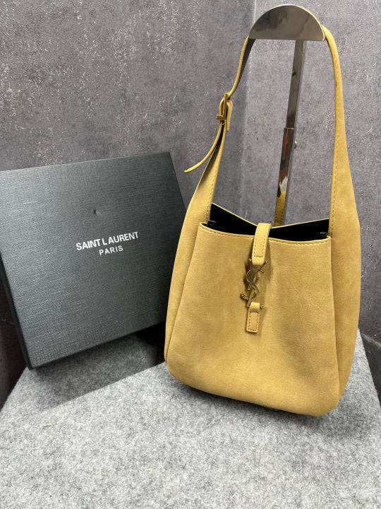Ysl Saint Laurent Le 5 7 Mini Hobo Textured-Leather Apricot Khakhi Shoulder Bag With OG Box Dust cover & Carry Bag Apricot Khakhi 6090