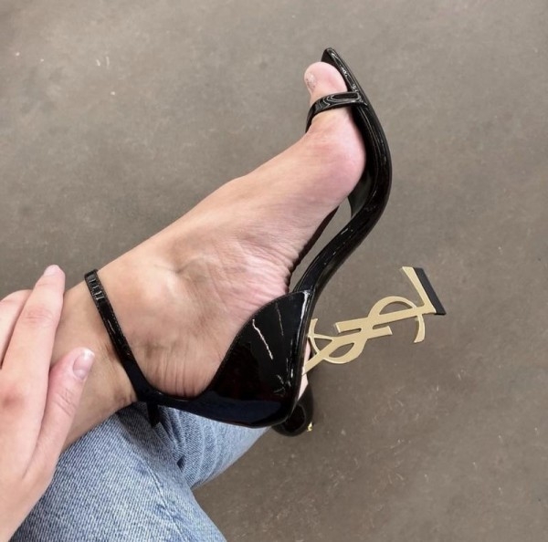 YSL Saint Laurent Opyum Heels With OG Box & Carry Bag (Black Gold - 868)