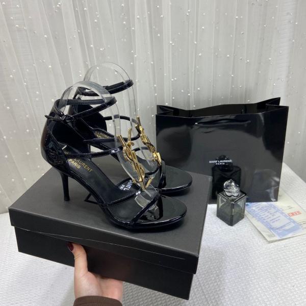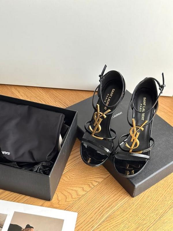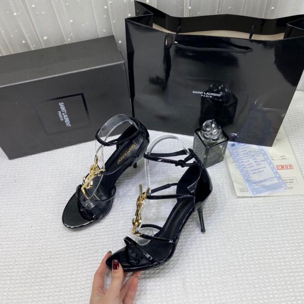 Ysl Saint Laurent Paris Gold Patent Leather Monogram Cassandra Sandals Heel With OG Box Dust Bag & Carry Bag