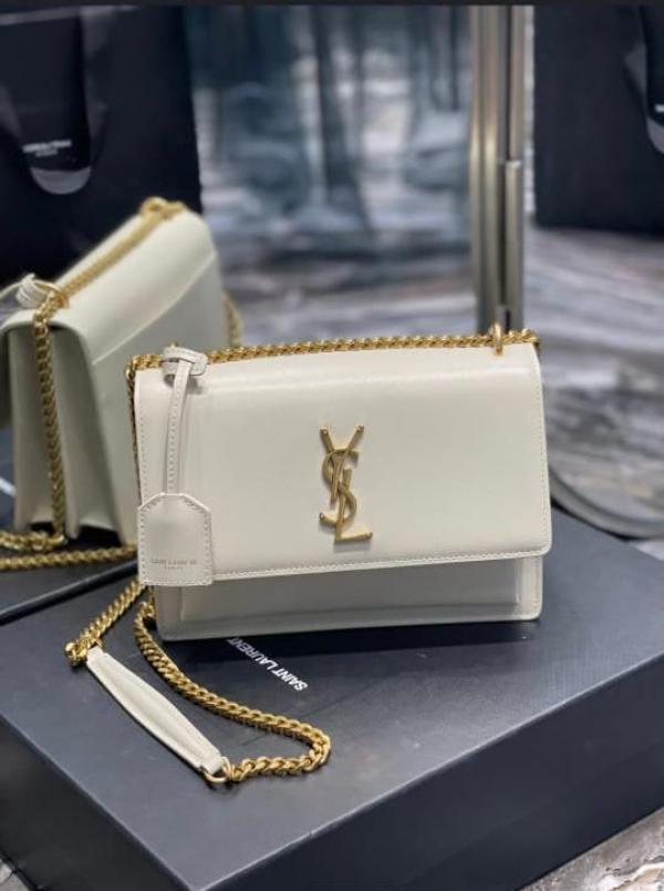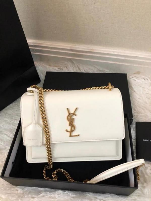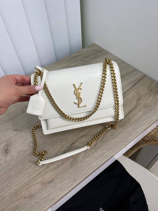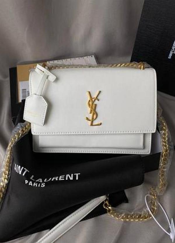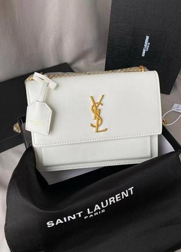 Ysl Saint Laurent Sunset Medium Leather Shoulder Bag White With OG Box & Carry Bag White Y2503