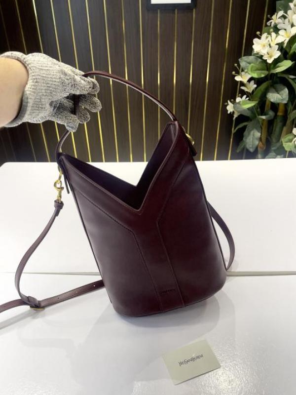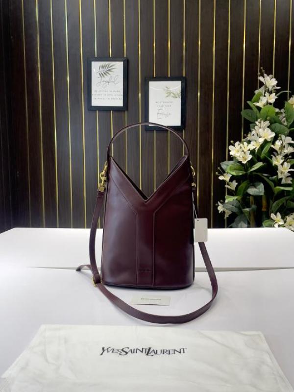Ysl Y top handle bucket bag with dust bag(2535-burgundy)
