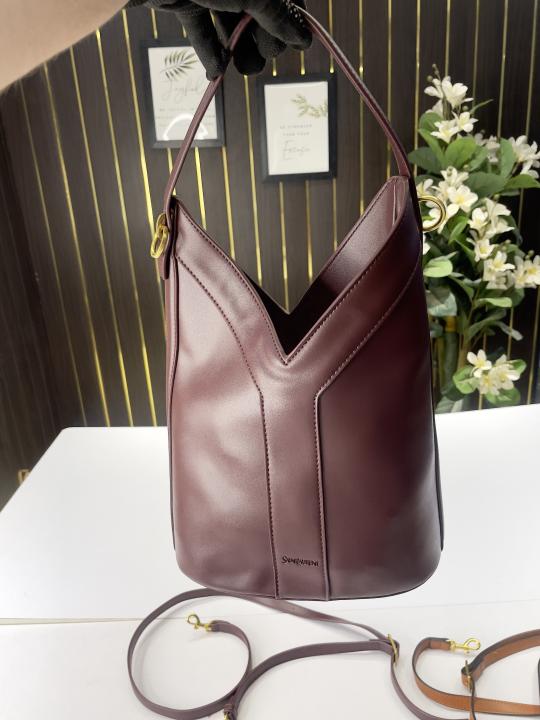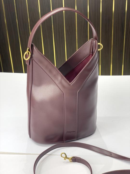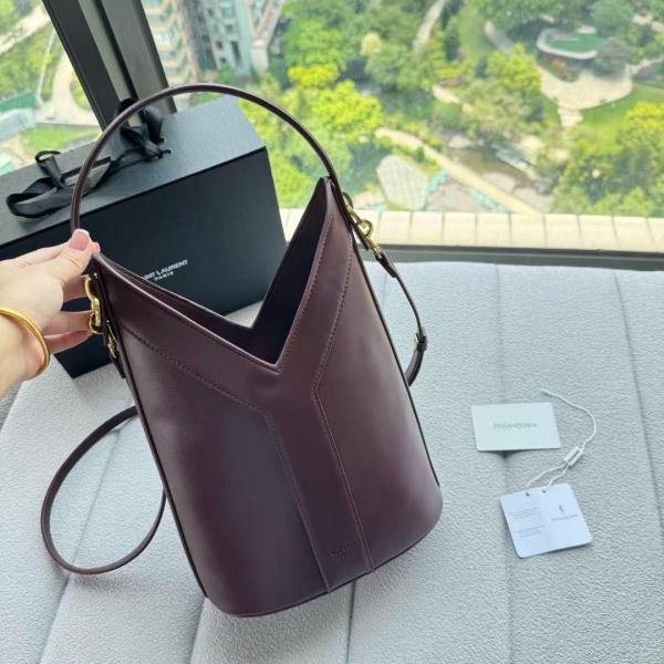 Ysl Y top handle bucket bag with dust bag(2535-burgundy)