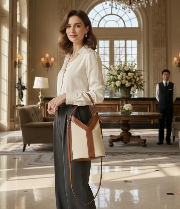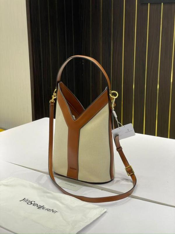 Ysl Y top handle bucket bag with dust bag(2535-canvas-brown))